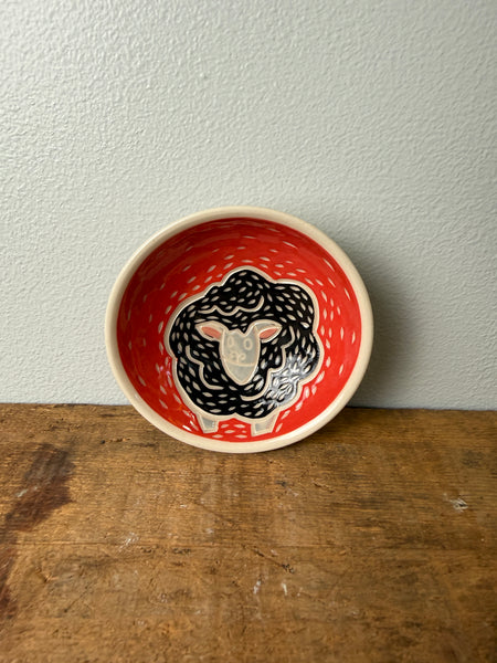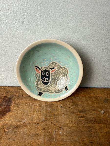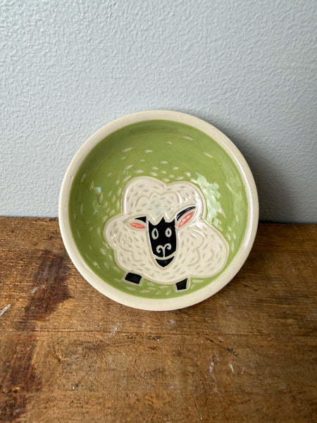 A flock of sheepies! A flock of fun. These bowls are the ultimate in ceramic versatility- the swiss army knife of ceramics. Use it for your bits, baubles, notions, m&ms, tea bags, sauces, spices for cooking you name it- these wee bowls are mighty useful and fun.